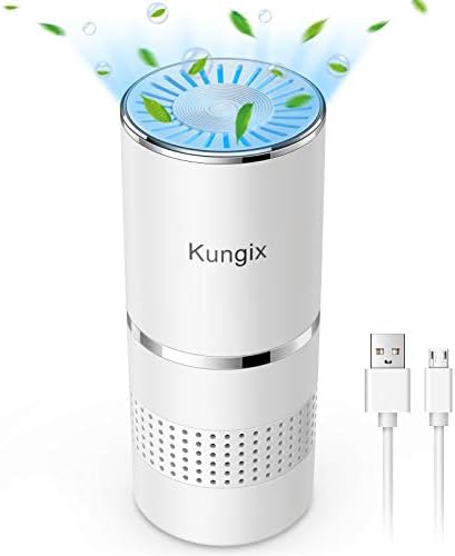 空気清浄機 車用 小型 車載空気清浄器 Ledライト搭載 軽量 除菌 花粉 車内消臭 ほこり ペット タバコ Pm2 5対応 静音 10畳対応 Usb給電式 Usbケーブル付き コンパクト 持ち運び Kungix 白